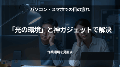 在宅ワーク 【メガネに頼らない】40・50代在宅ワーカー必見!目の疲れは「光の環境」と神ガジェットで解決 長時間の資料作成や読書で感じる「目の疲れ」って、本当に深刻な悩みですよね。在宅ワークやフリーランスで頑張る40代、50代の私たちにとって、このショボショボ感は効率を下げる最大の敵です。特に夕方、「あー、もう今日はダメだ…」なんて、僕もよく集... 2025.09.26 QOL向上ガジェット・ツール在宅ワーク