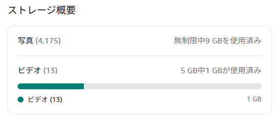 写真が容量無制限なのに対して、動画はプライム会員でも5GBまでという制限があります。