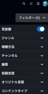 アプリを開いて何かキーワードを入力し、検索結果の右上に出る「フィルター」ボタンから「見放題」にチェックを入れましょう。
